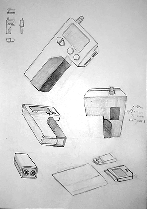 Na primeira etapa, desenvolvi a ideia de um aparelho semelhante a um celular antigo, capaz de ler, interpretar, gravar e enviar dados via cartão de memória, entrada USB, radio, wi-fi e cartão magnético, alimentado apenas por uma bateria 9v.